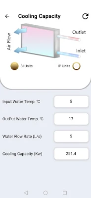 No need to wait till you go back to your computer to do the calculation… Cooling Capacity tool is providing all necessary calculations without the need of the any PC. Cooling Capacity tool will do the calculation for you for any input values are available for you…for example it can calculate the cooling load capacity if you have (inlet temperature, outlet temperature, & water Flow), also it can calculate water Flow if you have (inlet temperature, outlet temperature, & cooling capacity)… and so on. If you have any comments please don’t hesitate to contact Us. Yours: TALO tech team.