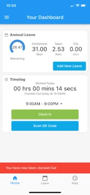 View your employee details and documents. Add leave and request leave cancellation. View your timesheet / rota. View the company directory. On your dashboard you can quickly see what leave you have remaining and also quickly clock in / out within seconds.