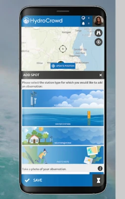 In addition to reporting measurements from the HydroCrowd stations, volunteers can create spots to record their own rainfall data and report weather events using ‘photo notes.’
