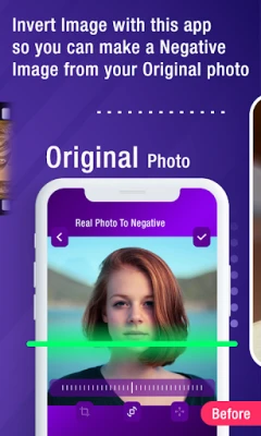 - Capture live photos in negative mode. - Edit photos from gallery to negative. - Scan Negative Photo to convert it to color photos. - Adjust negative image settings with photo adjustment tools. - Control contrast, brightness, white balance, etc., for perfect negative photos. - A magic to convert negative photo to color photos.